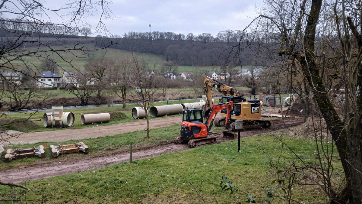 Reisduerf : Reeniwwerlafbecken mat enger integréierter Pompelstatioun